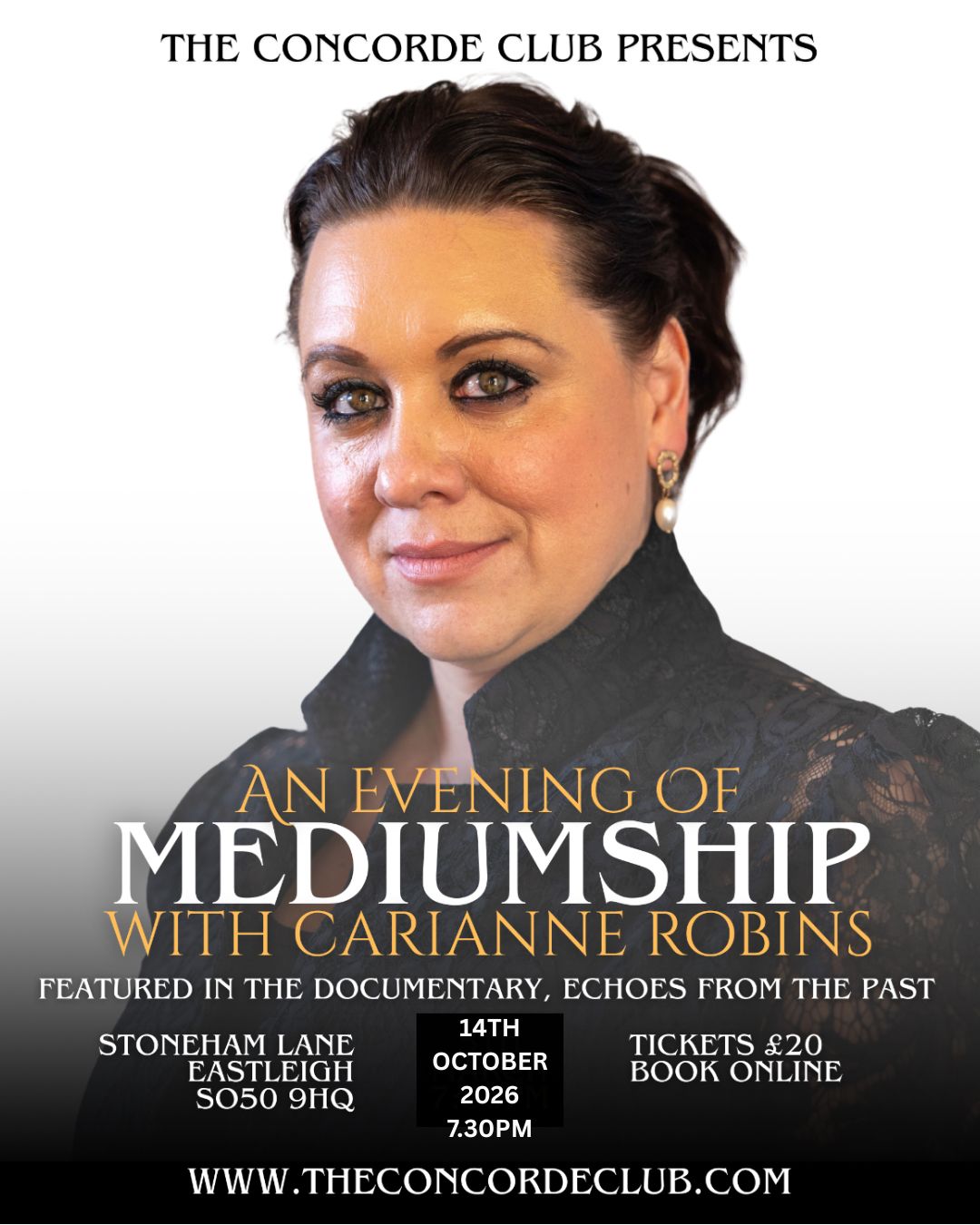 ‘Join us for an extraordinary venture into the world of spirit, with renowned medium Carianne Robins.