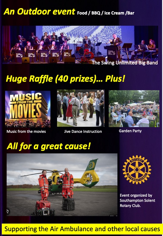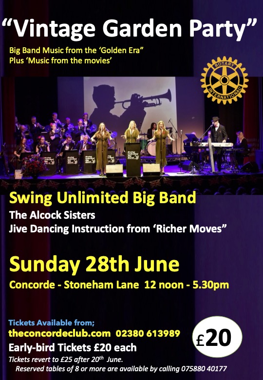 Tables of 8 or more can be reserved by contacting the Rotary direct on 07588 040 177
