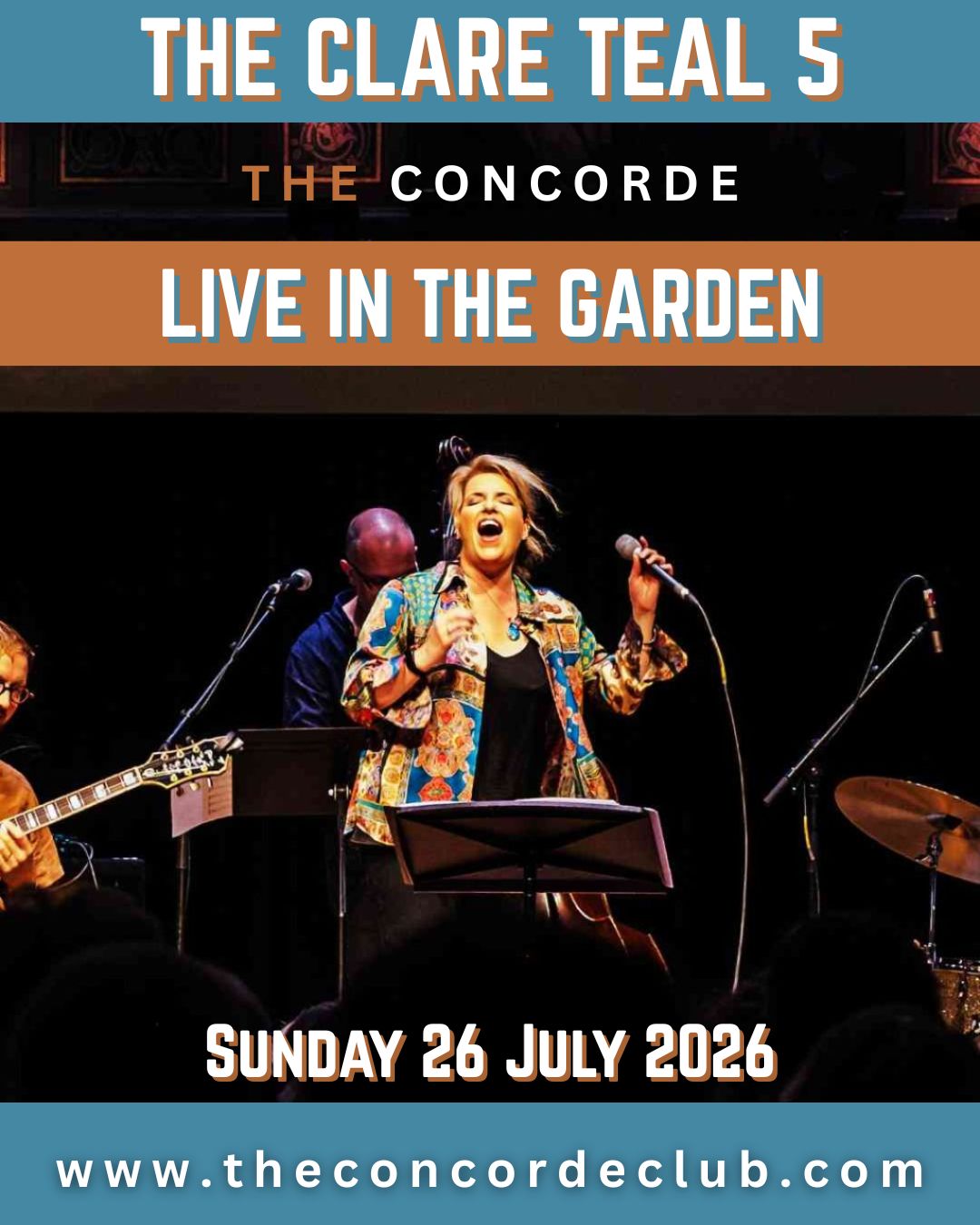 The Clare Teal 5, a truly exciting collaboration between Clare and her regular band featuring the UK’s finest jazz musicians.