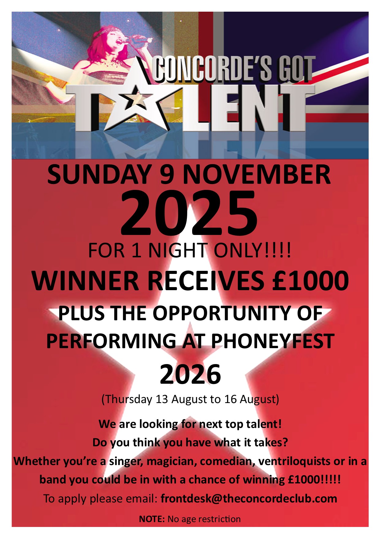 Whether you’re a singer, magician, comedian, ventriloquists or in a band you could be in with a chance of winning £1000!!!!!